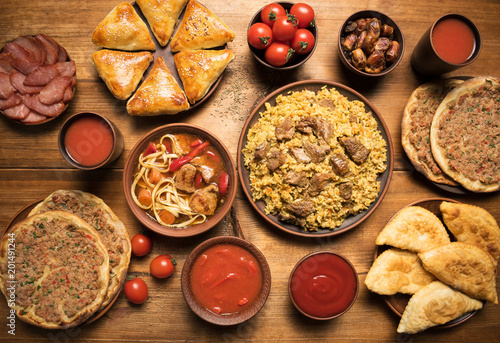 Traditional Assorted Arabic Dishes Pilaf Rice Soup With Beef