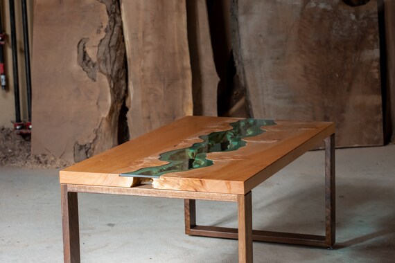 Big Leaf Maple River Coffee Table Glass Black Walnut Etsy
