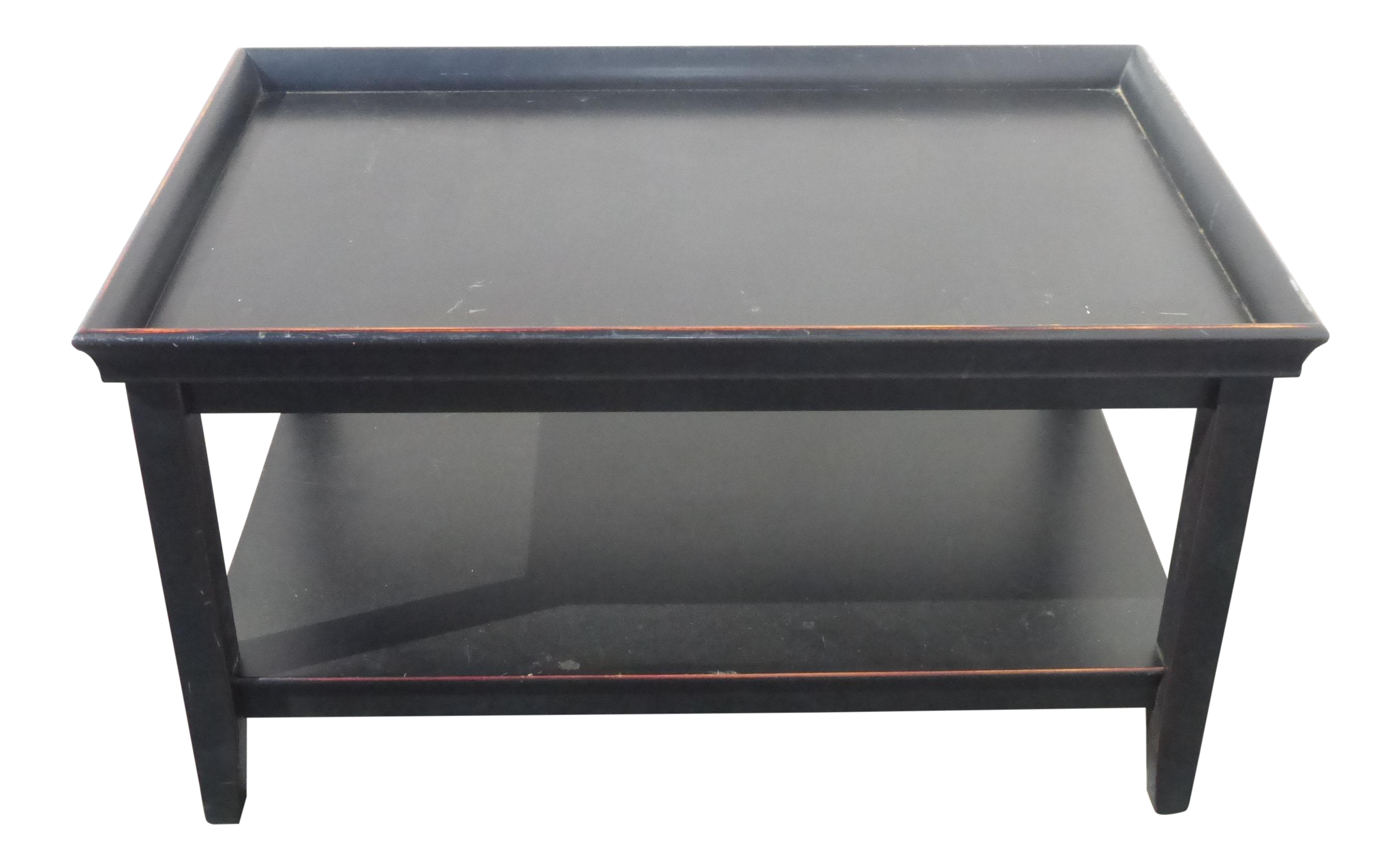 Distressed Black Asian Oriental Modern Tray Two Tier Coffee Table