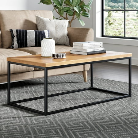 Doxa Solid Wood Modern Industrial Coffee Table Black Metal Box