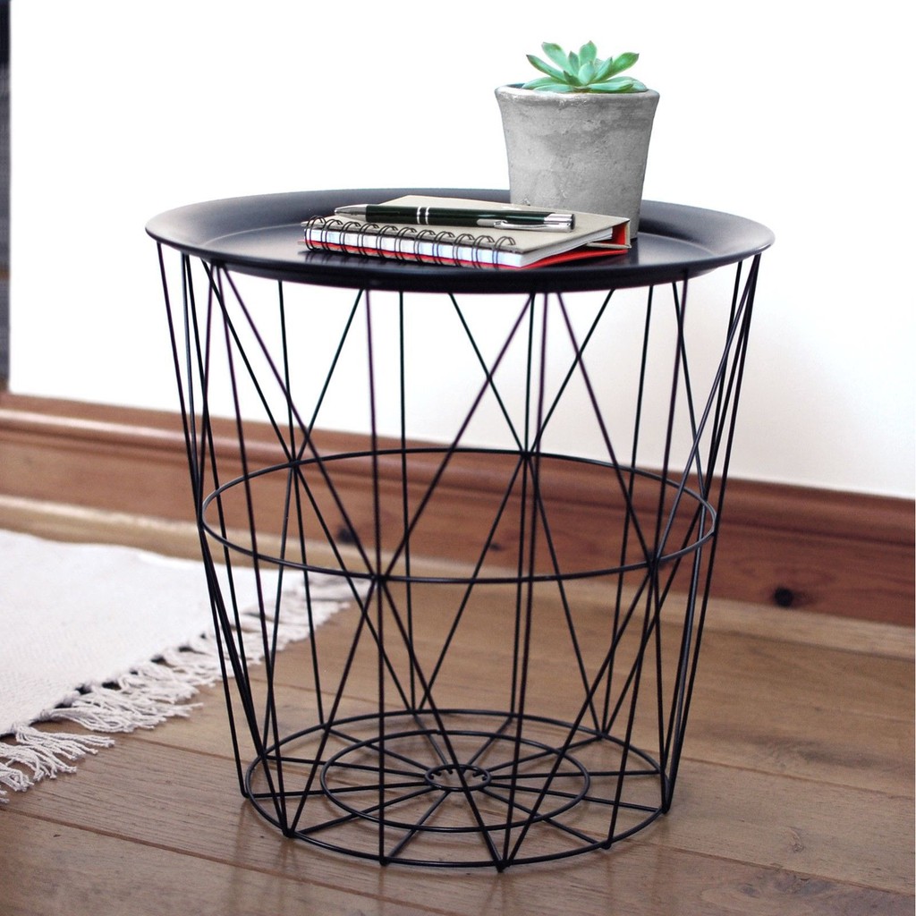 Stunning black dia 135 round glossy alligotor croc decorative ottoman coffee table kitchen counter serving tray with handles by decor trends for all occasions 1 1 black 50 out of 5 stars 11. I really like the idea of a coffee table plus tray on top be it for serving or mere decorative purposes. Clas ohlson modern scandi style round black metal coffee side table plant stand with 42cm detachable tray top 53cm height.