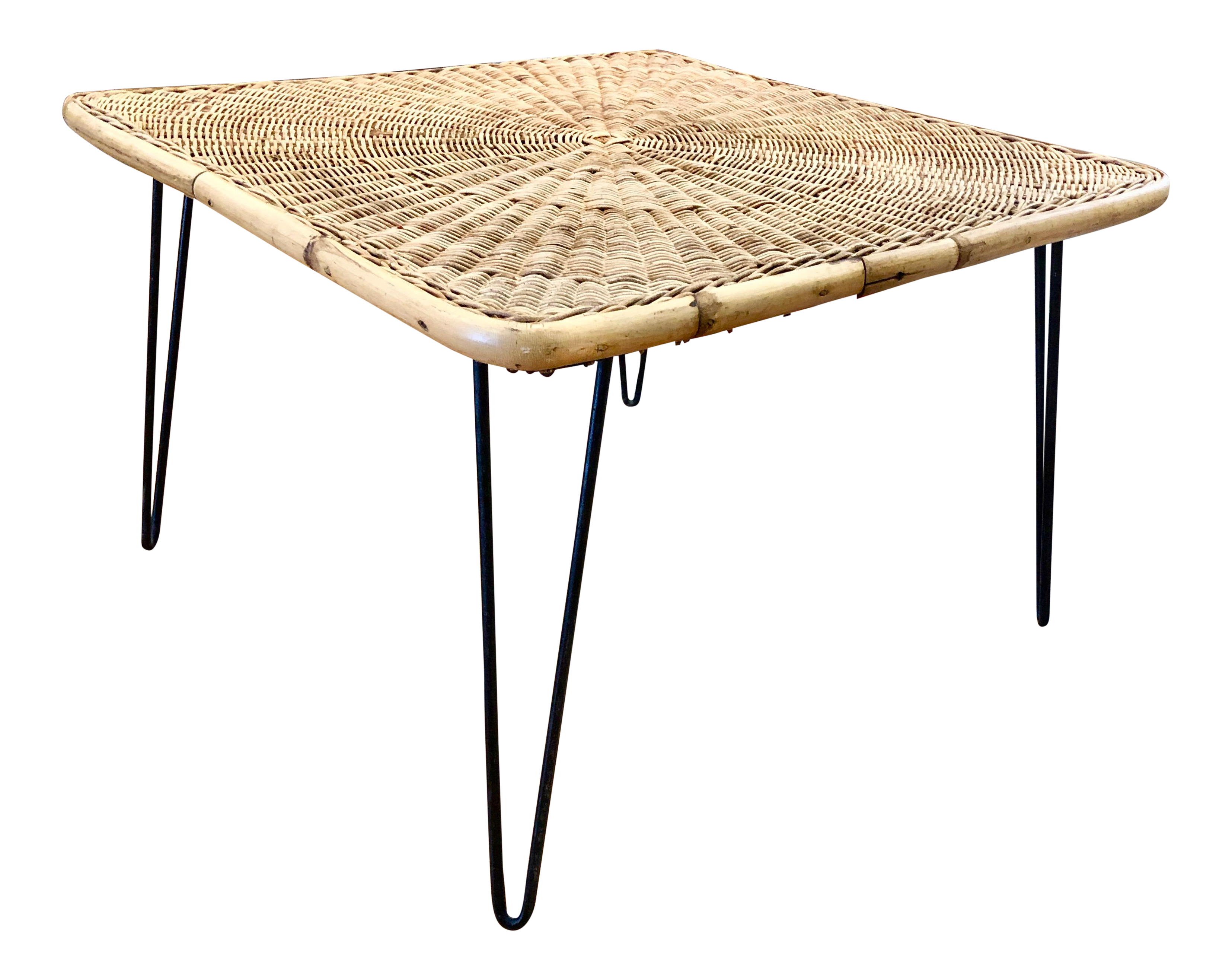 Mid Century Modern Wicker Coffee Table With Hairpin Legs Chairish