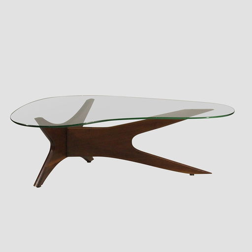 Adrian Pearsall 1465 T Mid Century Modern Walnut Glass Amoeba