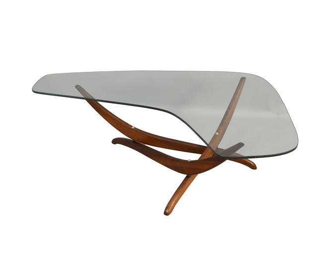 For Auction Boomerang Form Glass Top Coffee Table C 1960 3201