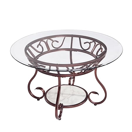 Joveco Red Bronze Metal Frame Round Coffee Table With Tempered