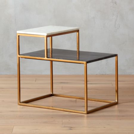 2 Tone White And Grey Marble Side Table Reviews Cb2