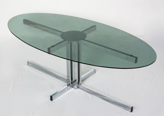 70s Sculptural Chrome Glass Coffee Table Etsy