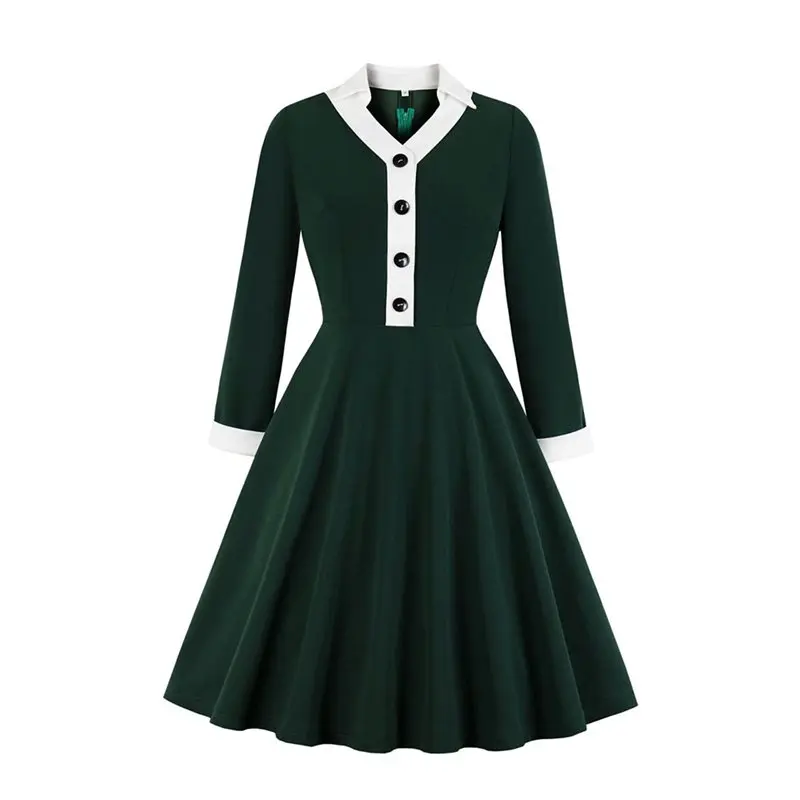 Retro Green Elegant Dinner Dress Long Sleeve Plus Size Xl2xl 60s