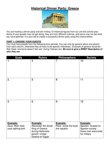 Ancient Greece Historical Dinner Party Assignment Students Love