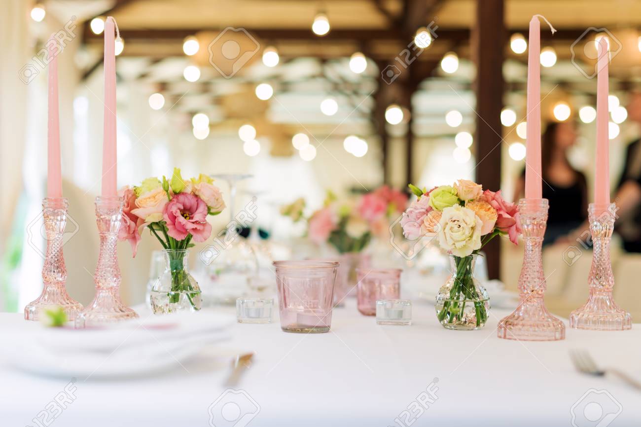 Dinner Party Banquet Tables Decoration Wedding Event Stock Image